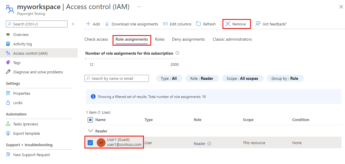 Você pode revogar o acesso de um usuário a um workspace do Dramaturgo usando o portal do Azure: