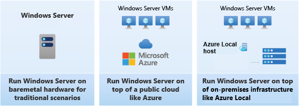 O Windows Server é um sistema operacional versátil e multiuso com várias funções e recursos. Ele permite que os clientes se conectem diretamente com CALs (Licenças de Acesso ao Cliente) apropriadas. Você pode executar computadores Windows Server na nuvem ou local, incluindo virtualizados no Azure Local.