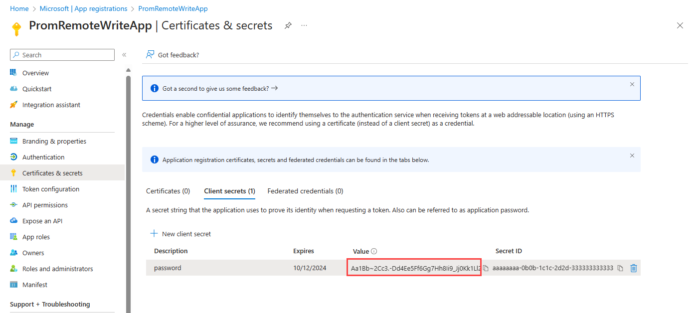 - O Prometheus versão 2.48 ou superior é necessário para autenticação de aplicativo do Microsoft Entra.