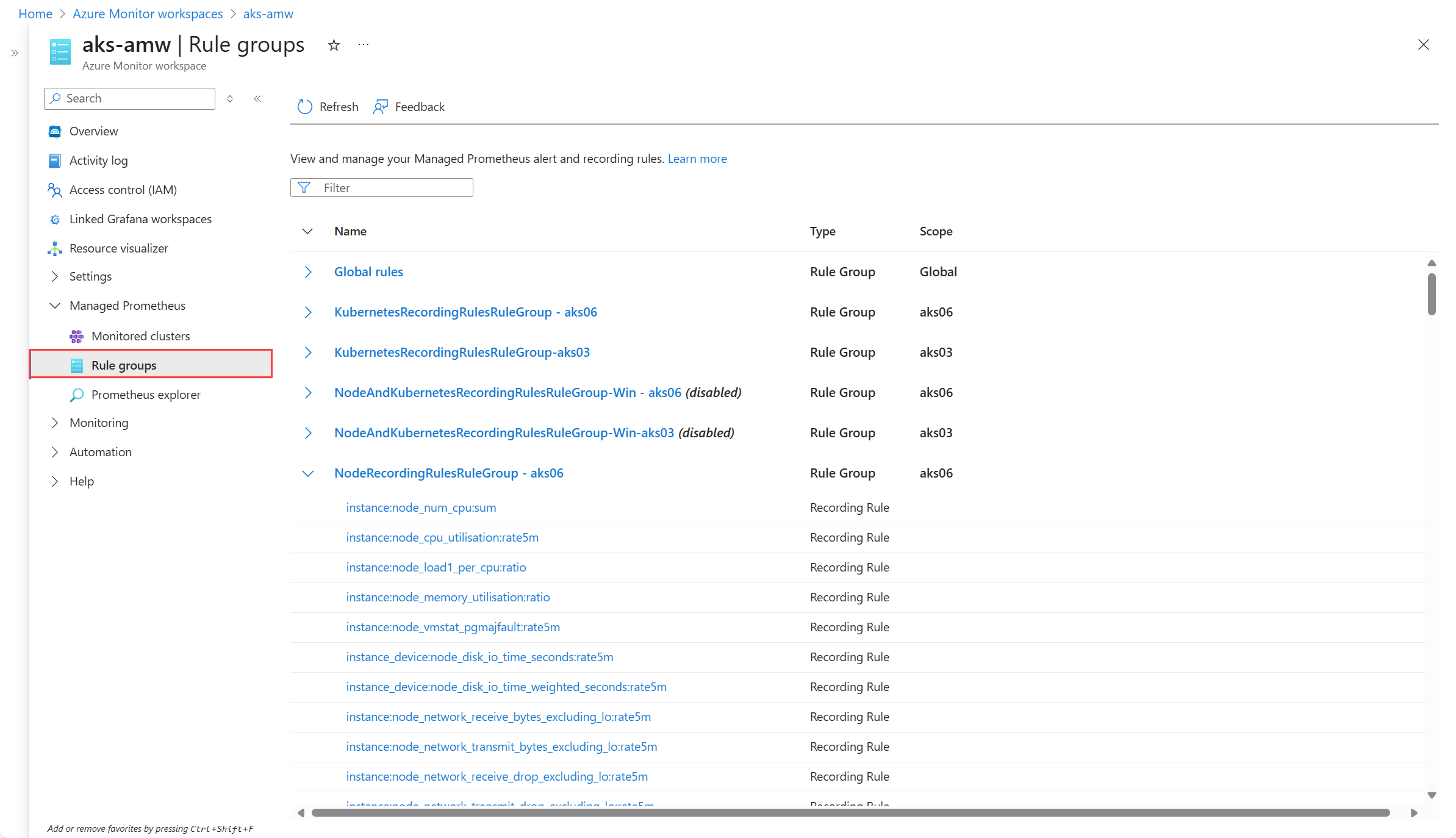 No portal, vá para a visão geral do grupo de regras do Prometheus que você deseja monitorar.
