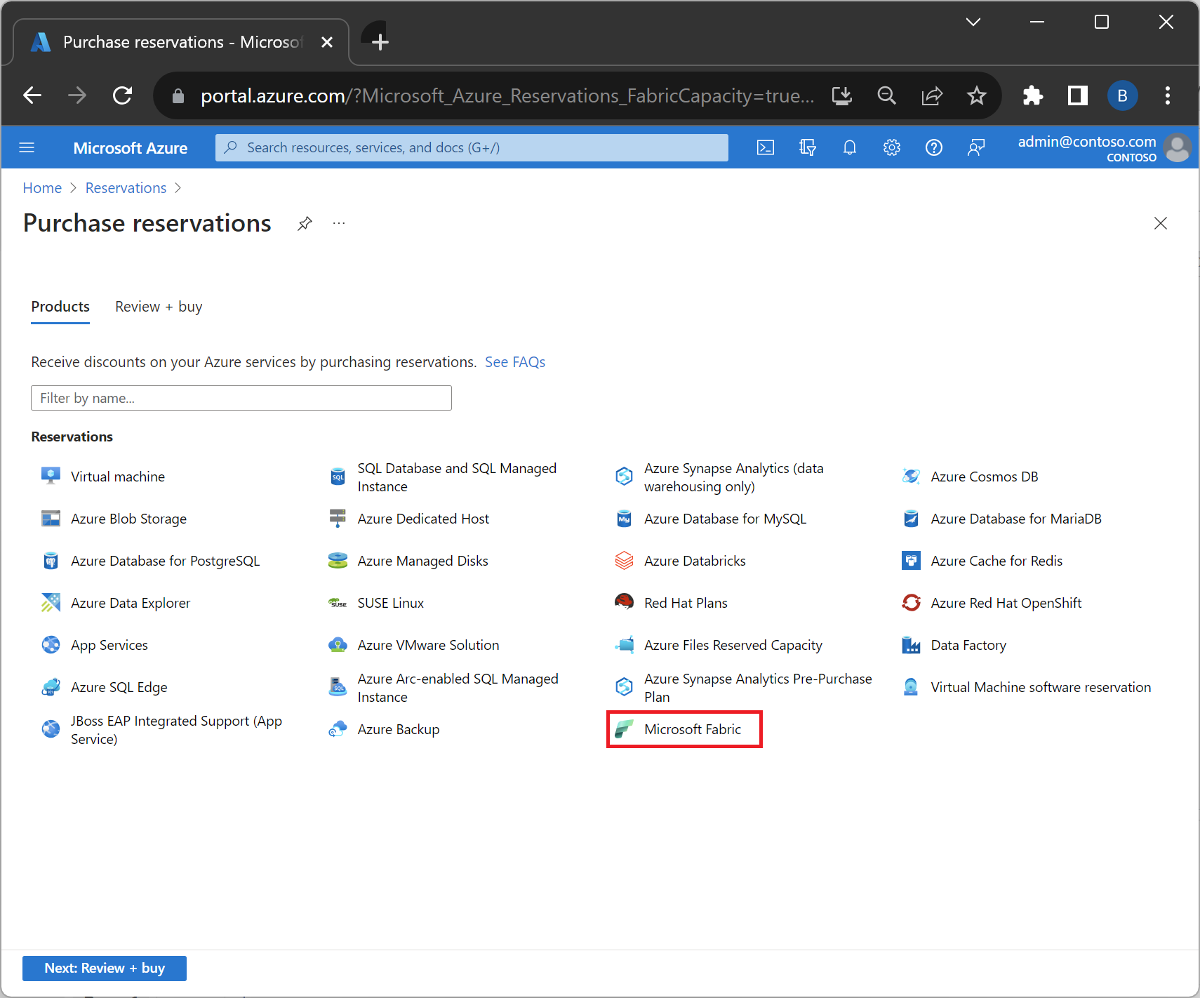 - Selecione Todos os serviços>Reservas e selecione Microsoft Fabric.
