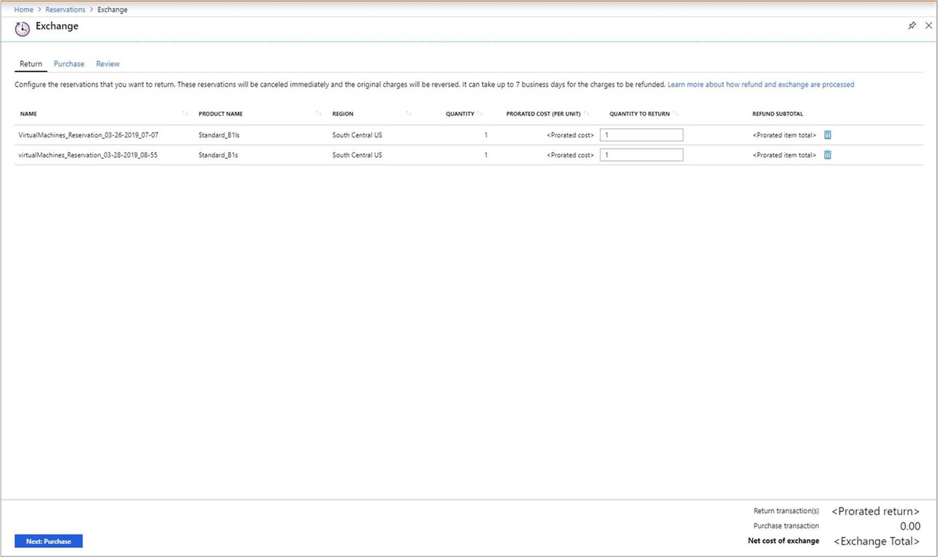 Para saber mais, confira Trocas e reembolsos via autoatendimento para Reservas do Azure.