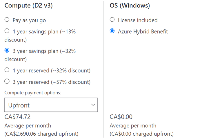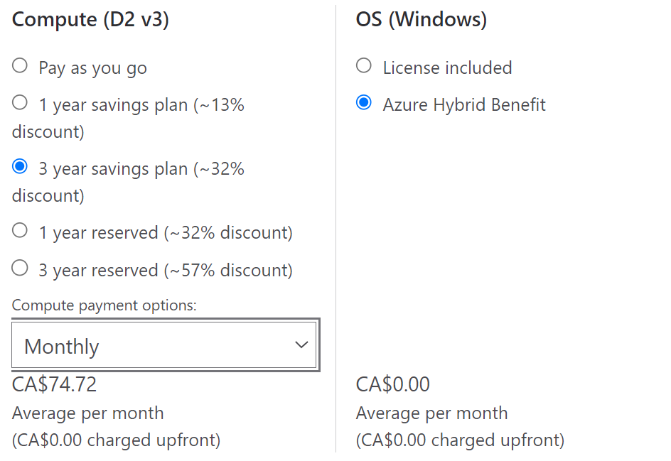 - Selecione Mensalmente como a opção de pagamento. É o custo mensal de um plano de economia que fornece 100% de cobertura para o recurso que estava anteriormente coberto pela reserva.