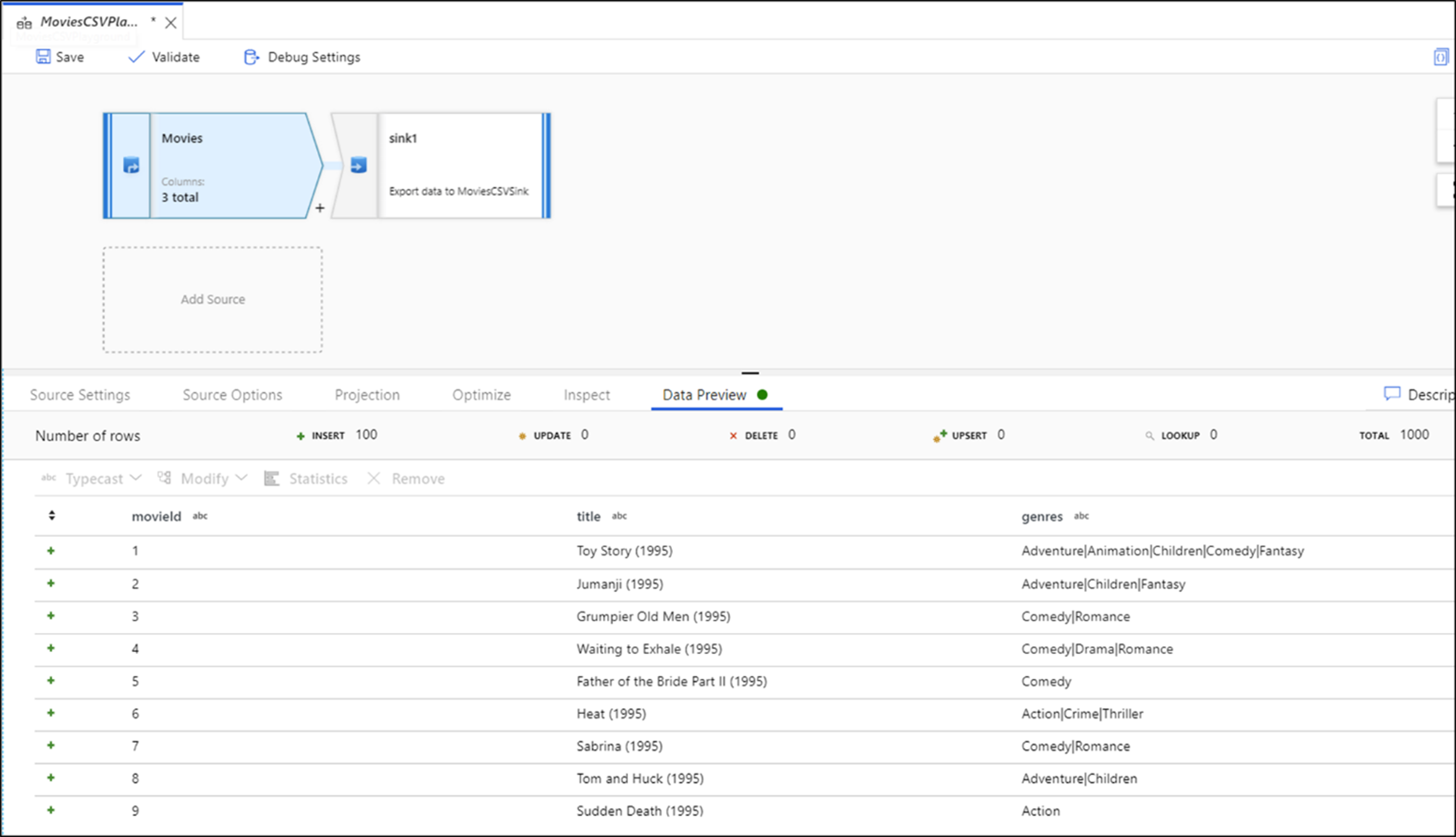 Ao desenvolver fluxos de dados, você será capaz de obter insights sobre cada transformação e alteração de código individuais usando o recurso de pré-visualização de dados para realizar testes de unidade antes de implantar suas alterações na produção.