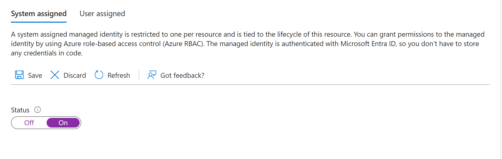 | Falha na autenticação para identidade gerenciada. | Identidade gerenciada não habilitada ou atribuição de função ausente. | Habilite a identidade gerenciada atribuída pelo sistema no recurso Foundry. Atribua a função necessária (Leitor ou superior) no serviço de destino. |
