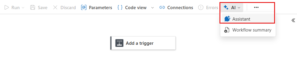 Na barra de ferramentas do designer de fluxo de trabalho, selecione IA>Assistente.