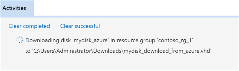Selecione Salvar para iniciar o download. O status de download será exibido em Atividades.