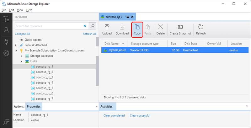 Com o Gerenciador de Armazenamento, você pode copiar um disco gerenciado dentro ou entre regiões. Para copiar um disco: