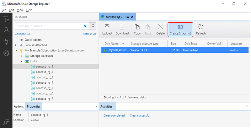 No painel de detalhes do grupo de recursos, selecione o disco que você deseja criar instantâneos e selecione Criar Instantâneo.