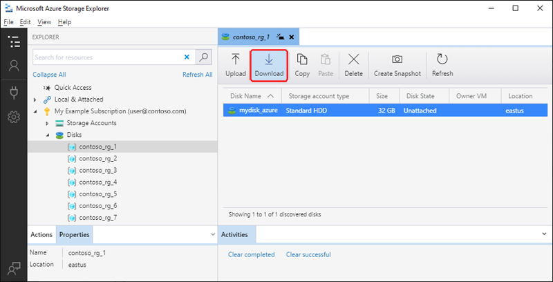Siga as etapas nesta seção para baixar um disco gerenciado para um VHD local. O estado de um disco deve ser Desanexado para que possa ser baixado.