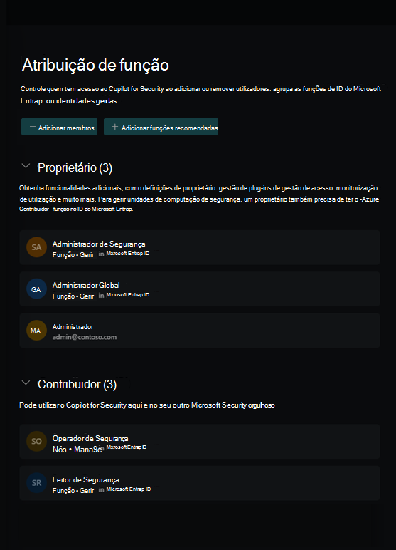 - Selecione a função Security Copilot a atribuir (Proprietário copilot ou Contribuidor Copilot).