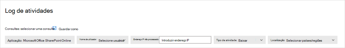 O Registo de atividades pode ser filtrado para que possa encontrar atividades específicas. Pode criar políticas com base nas atividades e, em seguida, definir o que pretende que seja alertado e agir. Pode procurar atividades executadas em determinados ficheiros. O tipo de atividades e as informações obtidas para cada atividade dependem da aplicação e do tipo de dados que a aplicação pode fornecer.