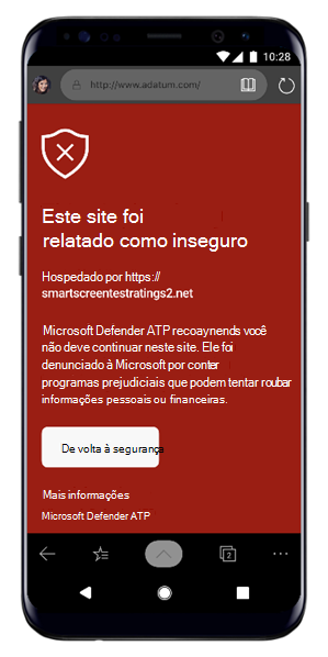 Os sites de phishing representam sites fidedignos para obter as suas informações pessoais ou financeiras. Visite a página Fornecer feedback sobre a proteção de rede se quiser comunicar um site que possa ser um site de phishing.