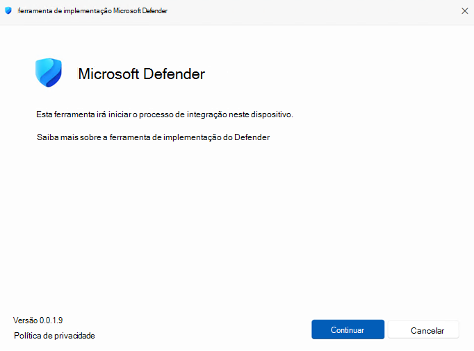 Execute a ferramenta de implementação do Defender sem alterar as definições e sem interagir com a mesma: