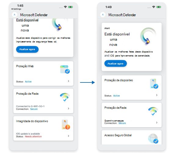 Como parte do nosso compromisso contínuo de proporcionar experiências de utilizador excecionais, estamos entusiasmados por anunciar uma série de alterações futuras à interface de utilizador e à experiência geral da nossa aplicação móvel Microsoft Defender para Ponto de Extremidade.