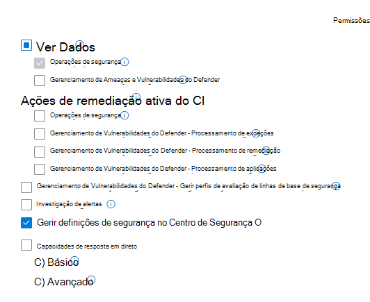 Para permissões de leitura, em Ver Dados, selecione Operações de Segurança.