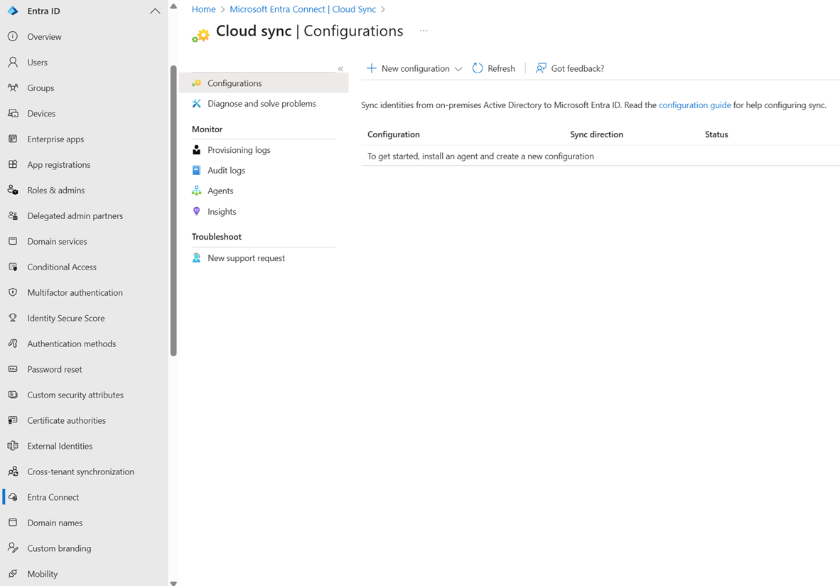 Navegue até Entra ID>Entra Connect>Sincronização na nuvem.