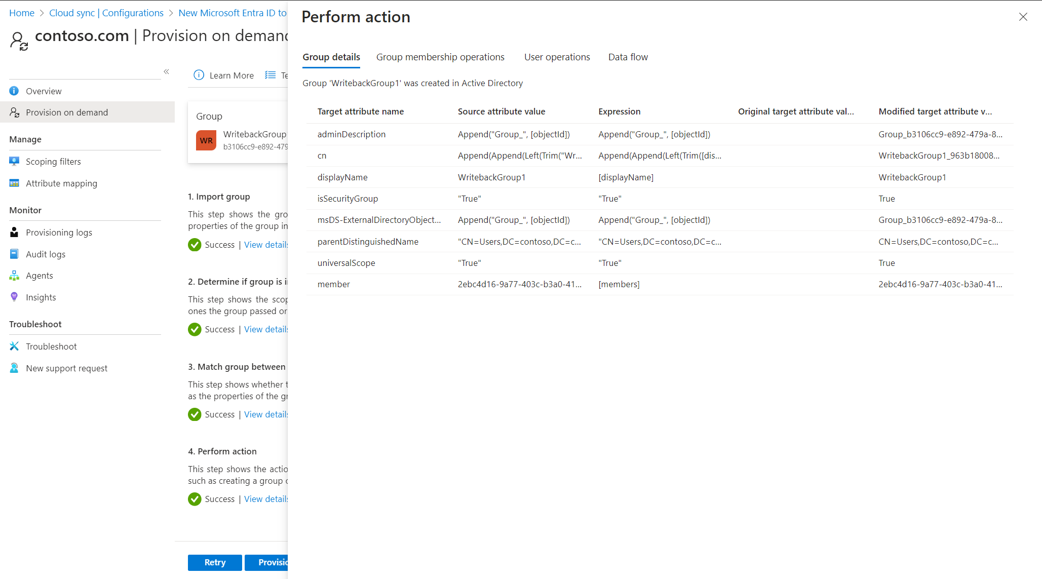 Você pode usar esse teste para validar e verificar se as alterações feitas na configuração foram aplicadas corretamente e estão sendo sincronizadas corretamente com a ID do Microsoft Entra.