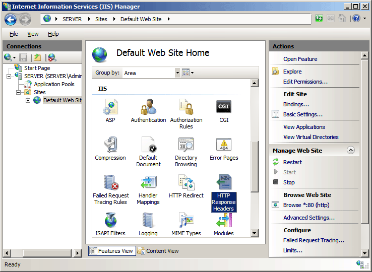 No painel Página Inicial, clique duas vezes em Cabeçalhos de Resposta HTTP.