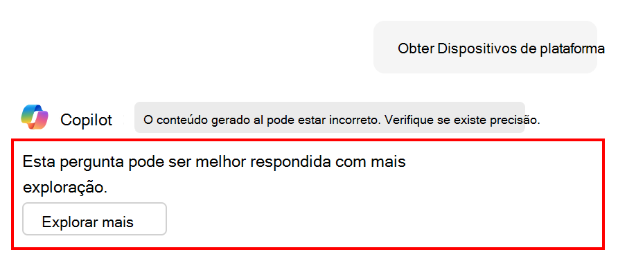 Copilot Chat inclui todos os pedidos que pode utilizar para explorar os seus dados de Intune. No seu pedido, poderá ver a opção Explorar mais :