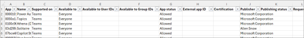 Enquanto administrador, pode exportar todo o catálogo de agentes e aplicações para a sua organização a partir do centro de administração do Teams. Pode ajudá-lo a coordenar com equipas de administração e segurança para avaliar agentes e aplicações, verificar a disponibilidade, verificar status e muito mais.