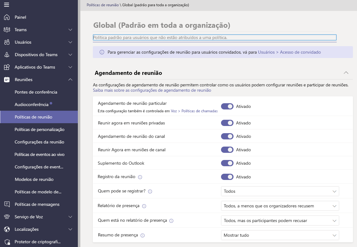- Selecione a política Global (predefinição de toda a organização) para ver as definições atuais.