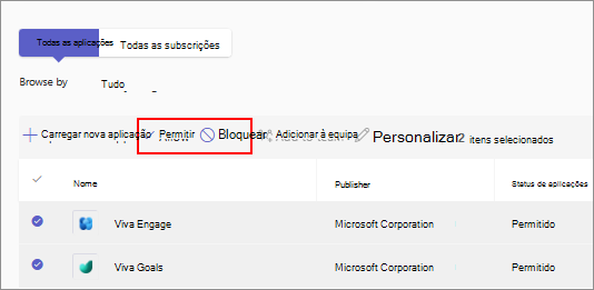Selecione a aplicação na página Gerir aplicações e selecione a opção Permitir ou Bloquear .