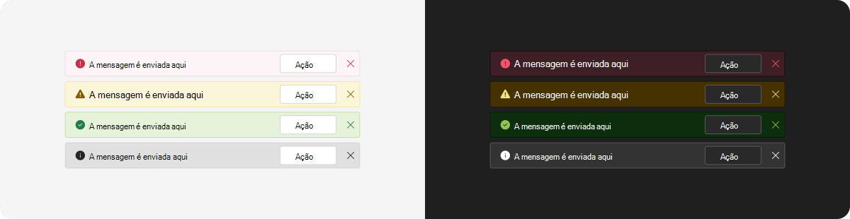 As ilustrações nesta página mostram o aspeto dos componentes nos temas predefinidos (claros) e escuros do Teams.