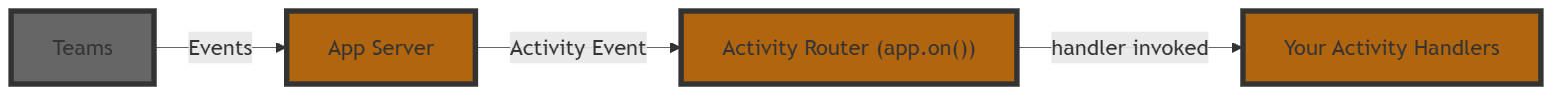 The Teams SDK exposes a fluent router so you can subscribe to these activities with @app.event("activity").