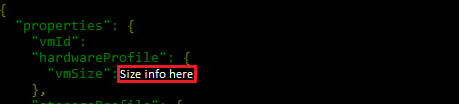 /subscriptions/<Subscription ID>/resourceGroups/<Resource group name>/providers/Microsoft.Compute/virtualMachines/<VM Instance Name>?api-version=2017-12-01A chamada retorna os valores para vmSize e location, conforme mostrado nas imagens a seguir.