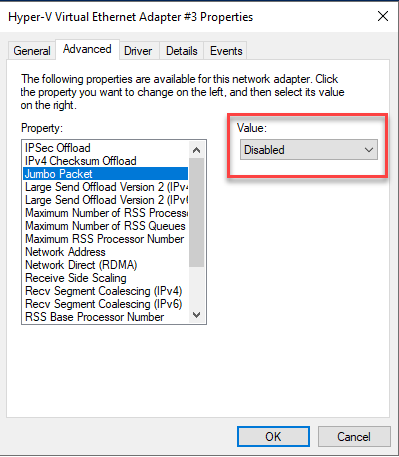 The following steps show how to identify a Jumbo Packet error from vNIC SMB02 and fix it: