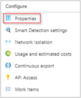 No recurso do Application Insights, selecione "Propriedades" no cabeçalho "Configurar" no menu à esquerda.