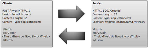 Já para incluir um novo livro, o cliente deve realizar uma requisição POST para o serviço que responde com o código de status 201, indicando que um recurso foi criado, uma URI para acessar o recurso recém criado e uma referência para ele, demonstrado na figura 4.