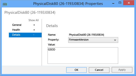 Install the latest firmware and driver versions on all disks—Install the firmware version that is listed as approved for the device in the Windows Server Catalog or is recommended by your hardware vendor. Within a JBOD, it's important that all disks of the same model have the same firmware version.