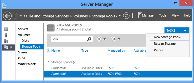 If you're managing your storage spaces in Virtual Machine Manager, configuration updates made in Windows PowerShell go to VMM automatically. To see them immediately in the VMM console, you can scan the storage manually.