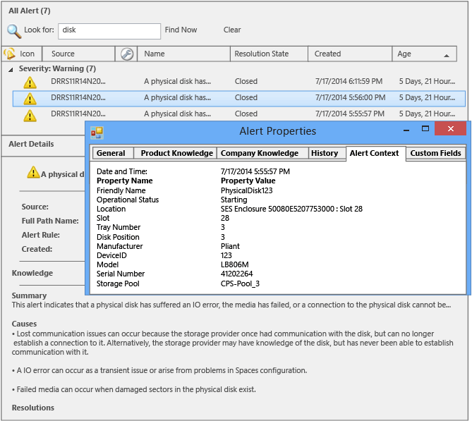 Check for additional monitoring tools available from the hardware manufacturer—Some hardware manufacturers provide a management pack that gives greater visibility into the health and availability of their JBOD storage enclosures in System Center Operations Manager. Check with your hardware vendor for information.