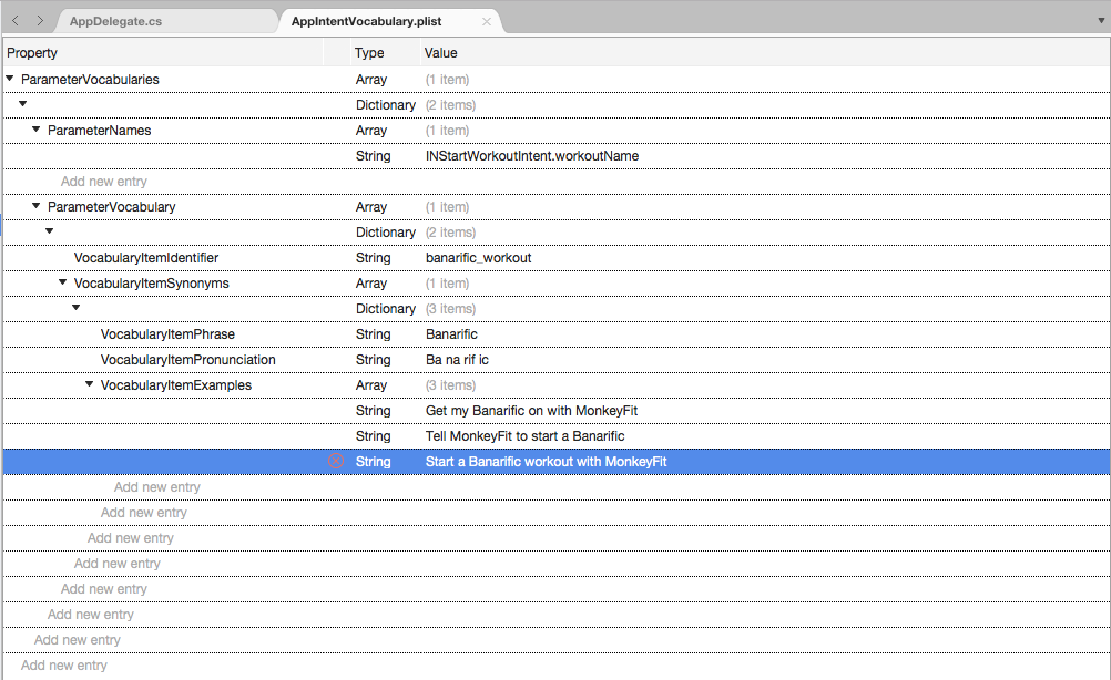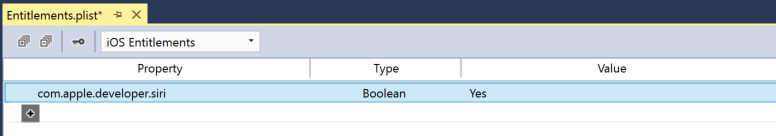 com.apple.developer.siriPropriedade, defina o Tipo comoBooleane o Valor comoYes:Salve as alterações no arquivo.