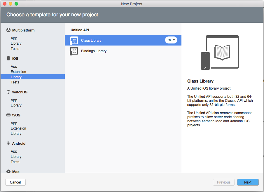 Selecione Biblioteca de Classes da Biblioteca>do iOS>e clique no botão Avançar: