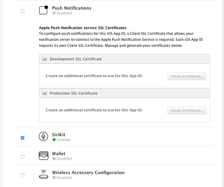 Role para baixo até a seção Serviços de Aplicativos, selecione SiriKit e clique no botão Continuar: