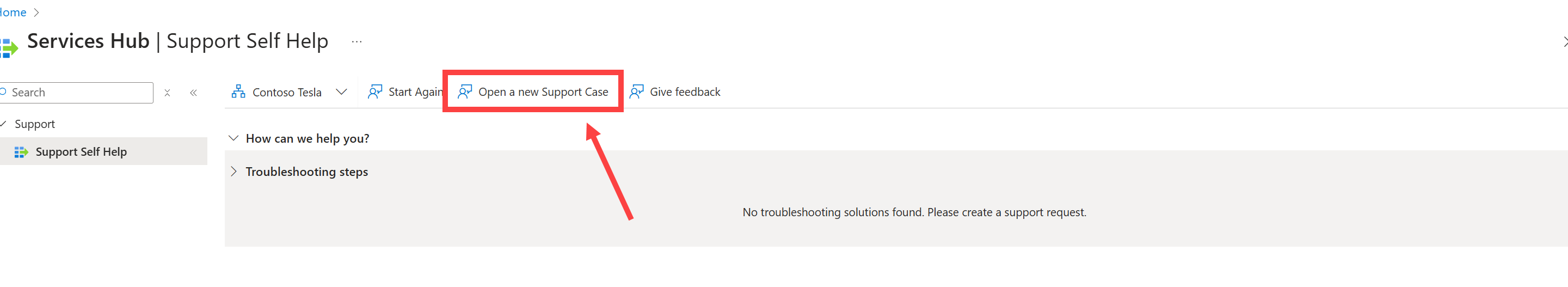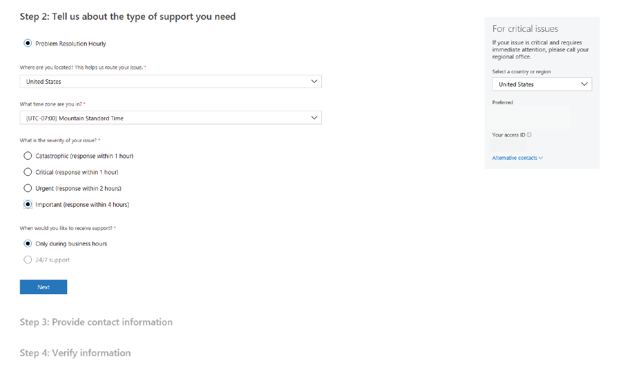 Isso levará você ao novo processo de solicitação de suporte. A seção a seguir fornece instruções para você seguir quando chegar lá.