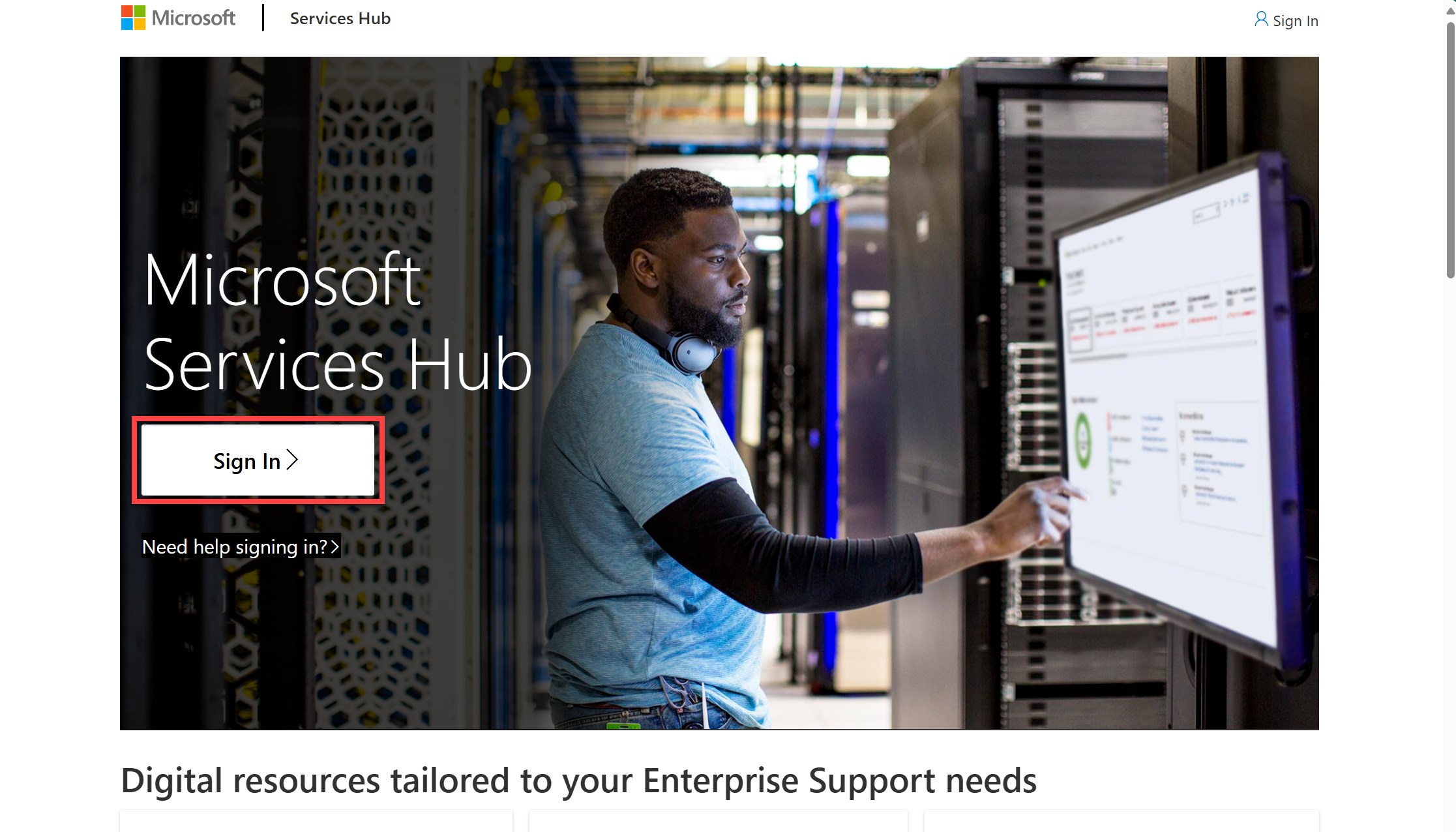 Você também pode acessar nossa página Obter ajuda para entrar em contato conosco a fim de obter ajuda com o site do Services Hub.