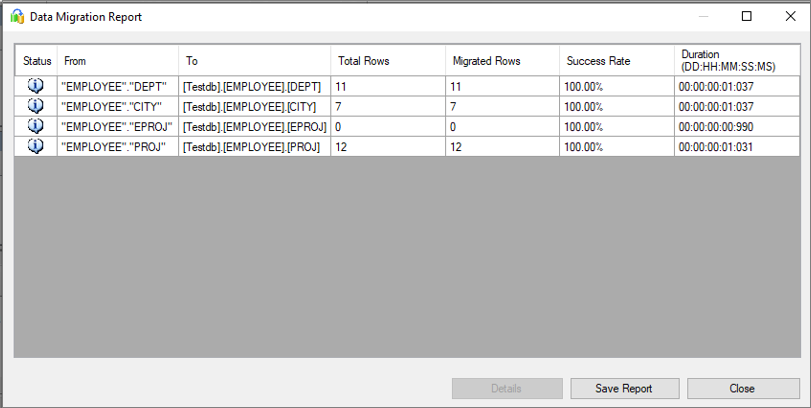 Depois que a migração for concluída, exiba o Relatório de Migração de Dados.