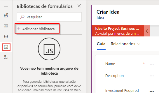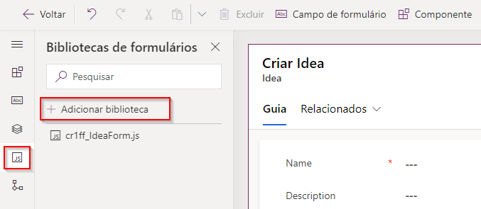 Para carregar um recurso da Web de script, crie uma Biblioteca de Formulários no editor de formulários.