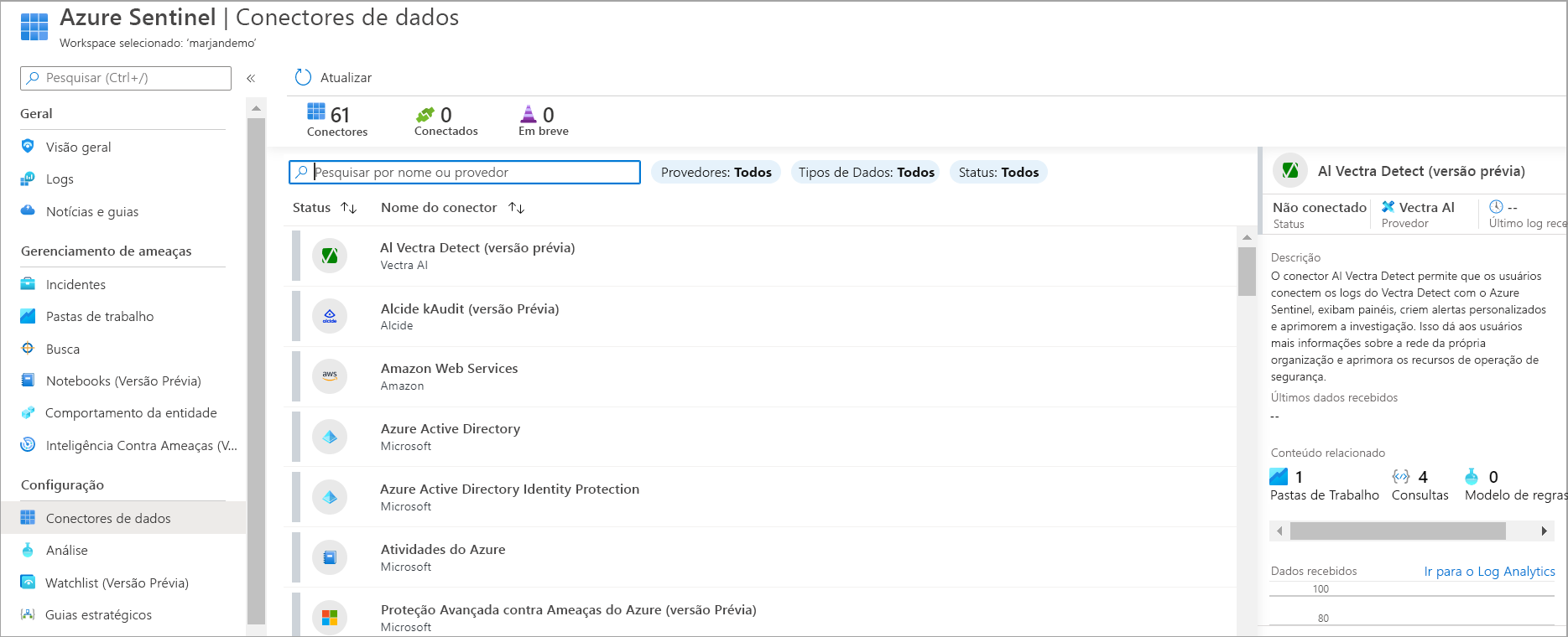 Tarefa 3: configurar conectores de dados do Microsoft Sentinel