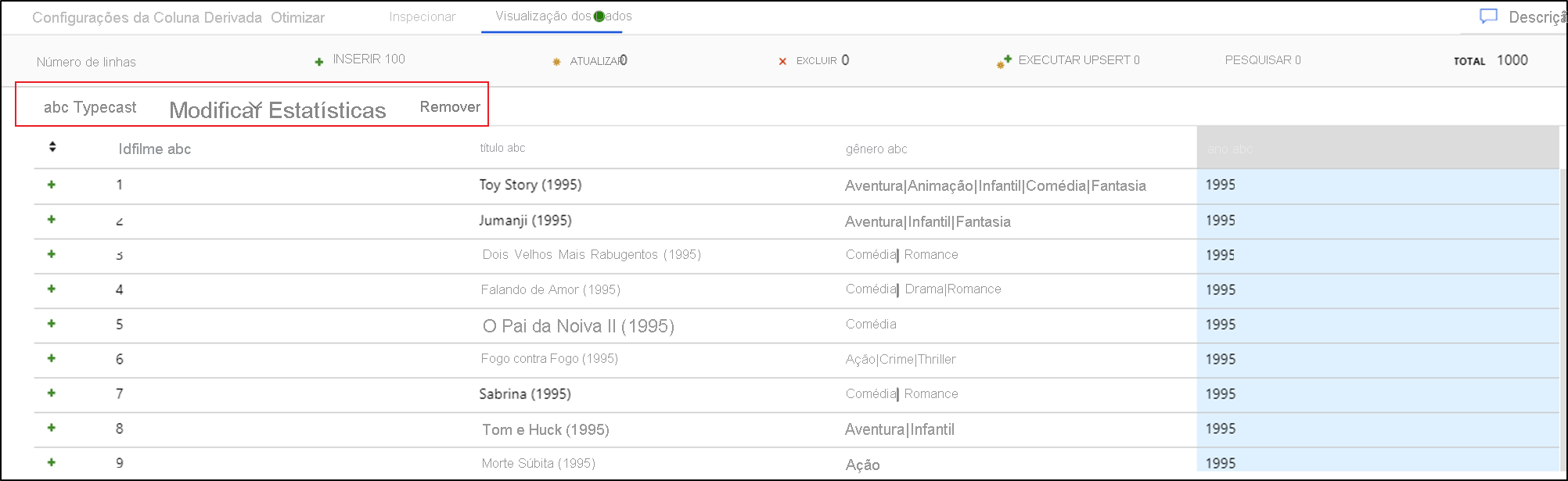 Uma guia Visualização de Dados está disponível no modo de depuração, que permitirá que você veja os dados em cada fase do pipeline. Você pode ver os dados após cada transformação. O pré-visualizador de dados também permite realizar ações sobre os dados, como examinar estatísticas descritivas dos dados ou modificar os dados.