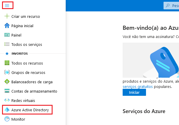 Selecione Mostrar menu do portal e Microsoft Entra ID.