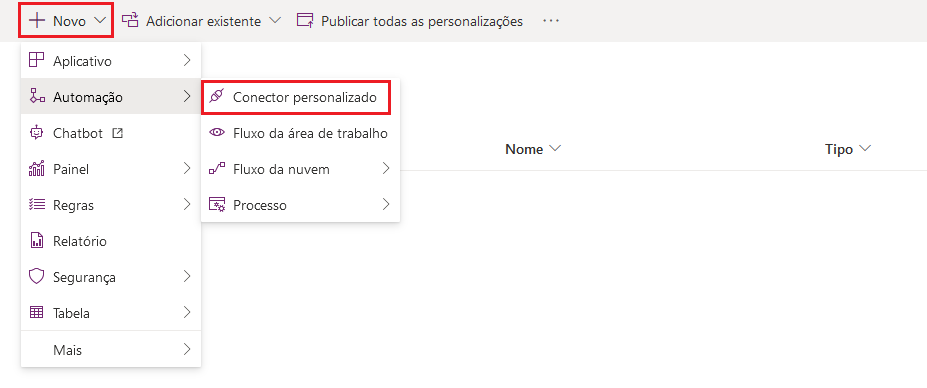 Vá para o Power Apps Maker Portal e verifique se está no ambiente correto.