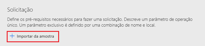 Vá para a seção Solicitação e selecione + Importar da amostra.