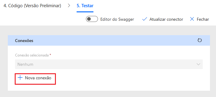 Selecione a guia Teste e, em seguida, selecione Nova conexão.