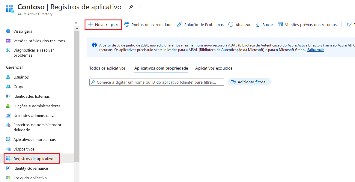 Tarefa 3: registre um novo aplicativo e adicione permissões